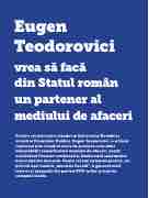 Printre cei mai activi membri ai Guvernului României, ministrul Finanțelor Publice, Eugen Teodorovici, s-a făcut remarcat prin numărul mare de proiecte care aduc îmbunătățiri semnificative mediului de afaceri, susțin activitatea firmelor româneşti şi diminuează substanțial birocrația din domeniu. Poate cel mai aşteptat proiect, cel privind aşa-numita „amnistie fiscală”, a generat mult interes şi aşteptări din partea IMM-urilor şi marilor companii locale.